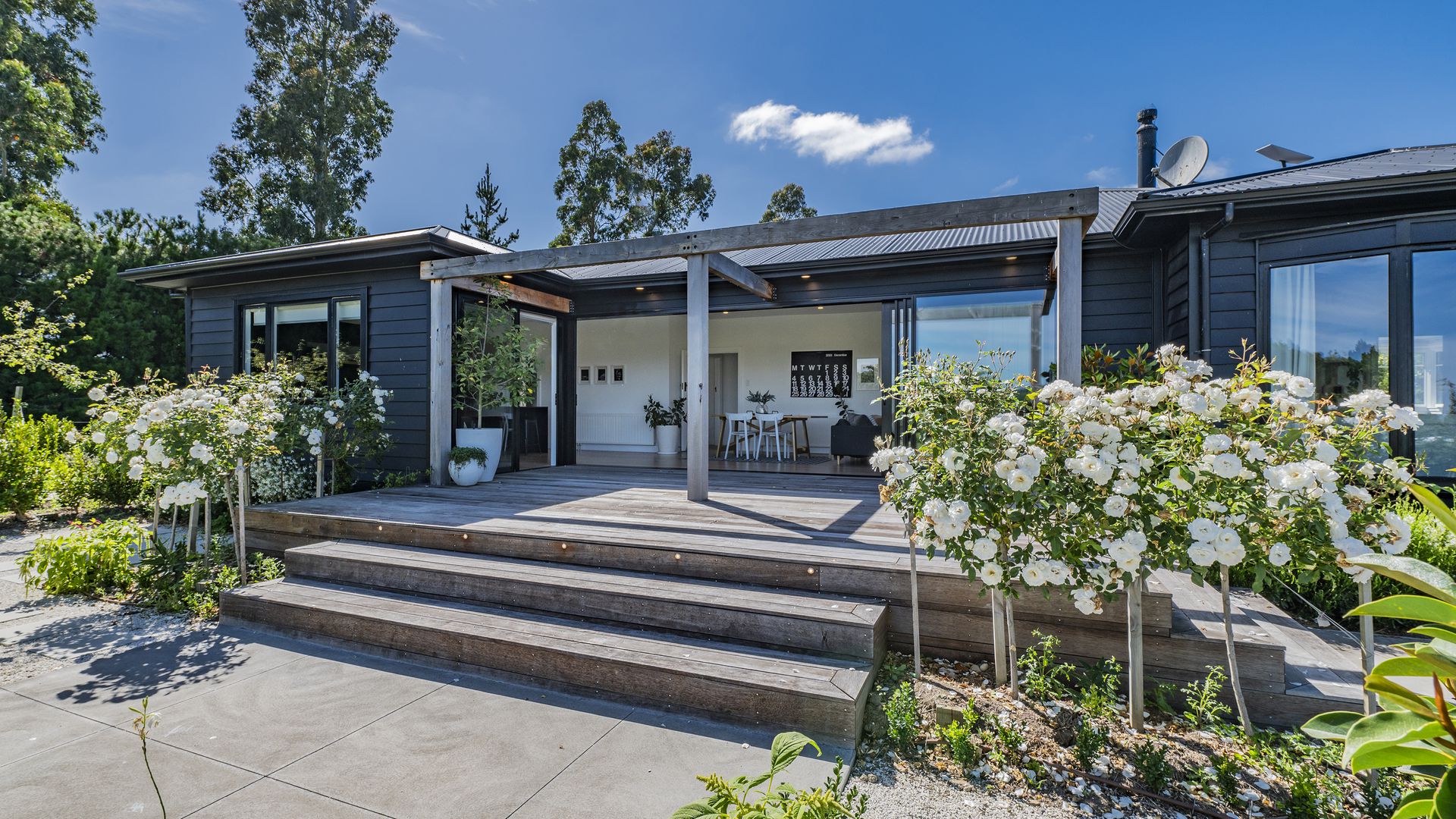 Tucked away at the end of a sweeping driveway, this immaculately presented 174sqm (approx.) home, set on an expansive 2.0004ha (approx.), is your dream come true. Originally relocated in 2017 and beautifully transformed in 2023, this home offers a warm and inviting atmosphere from the moment you step inside. The heart of the home is the open-plan kitchen, dining, and living area, complemented by a cozy lounge that’s perfect for relaxation. The sophisticated black kitchen is a chef’s delight, boasting quality appliances and an engineered stone benchtop, combining style and functionality seamlessly.