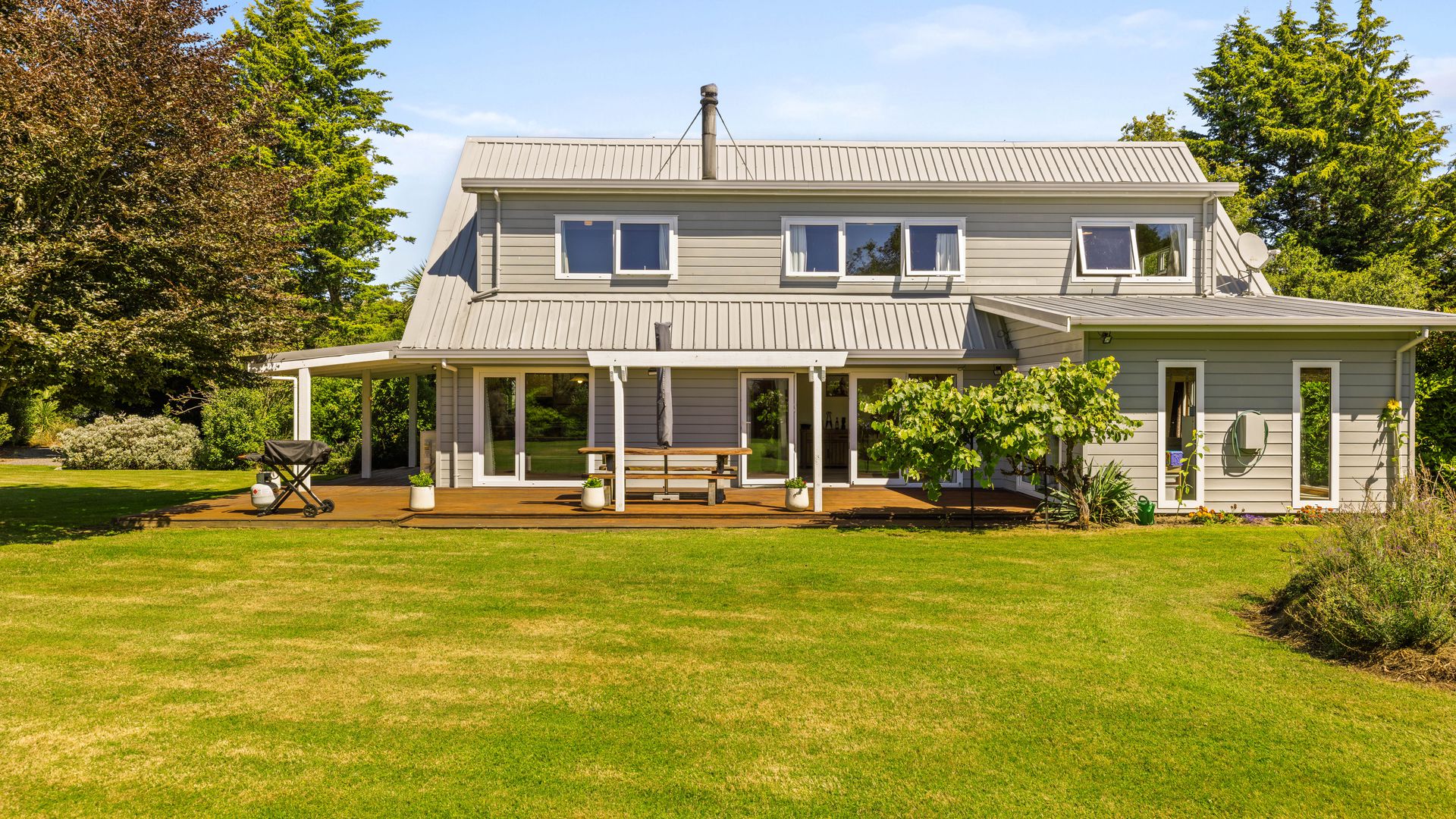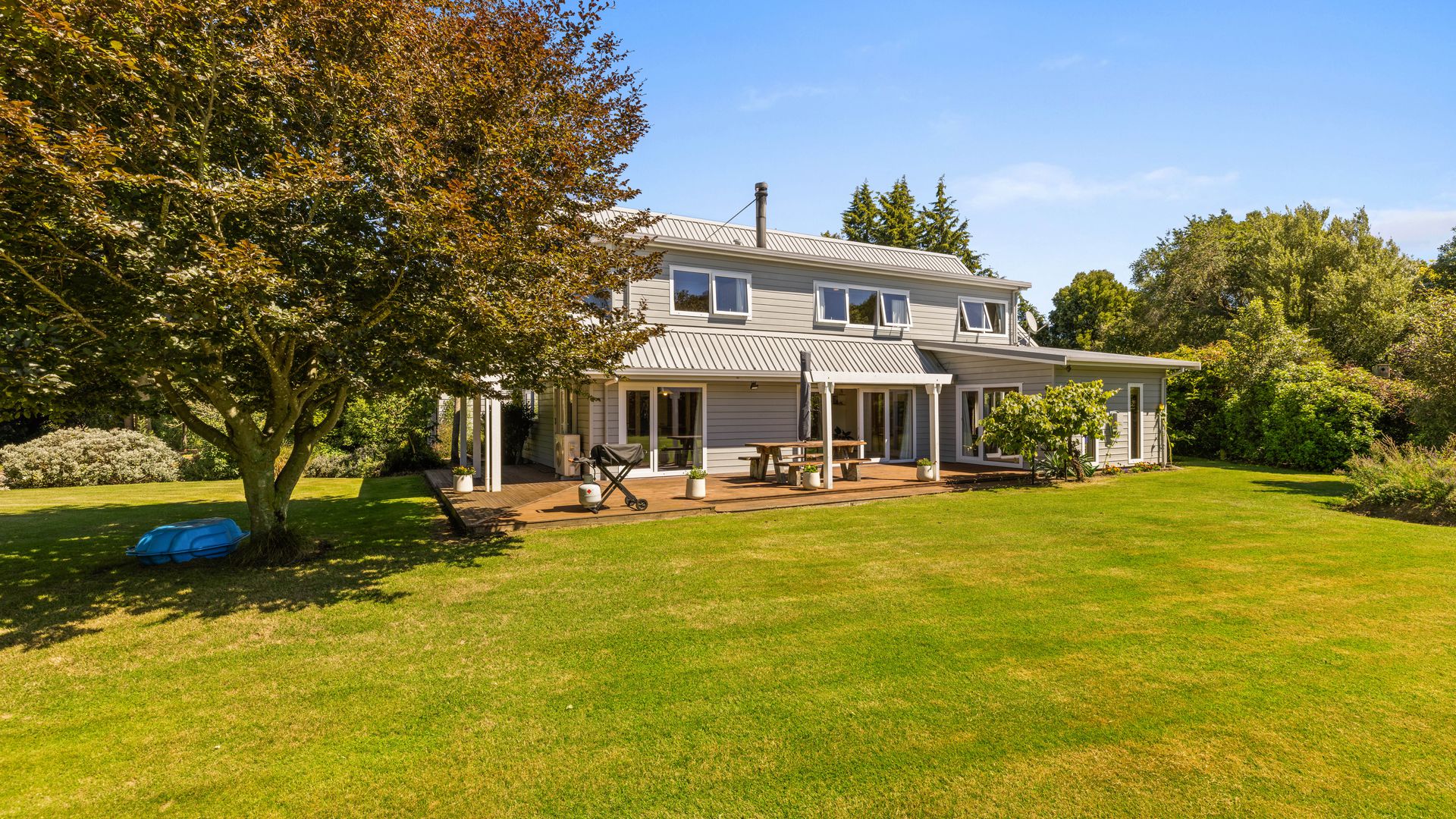 The outdoor setting is where this property truly shines. Mature trees and established gardens create a sheltered and private environment, while expansive lawns give children and pets room to roam. A paddock, productive fruit trees and a large tunnel house make it easy to embrace a more self-sufficient way of life.