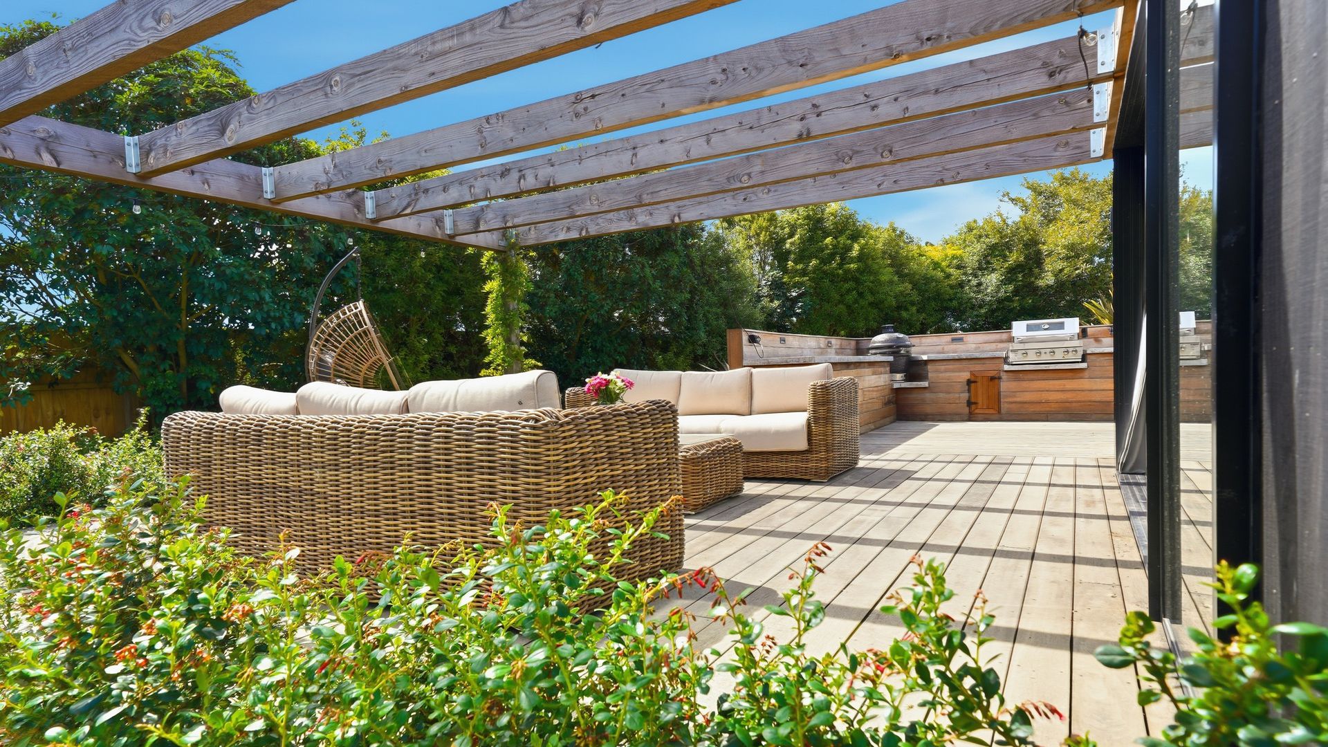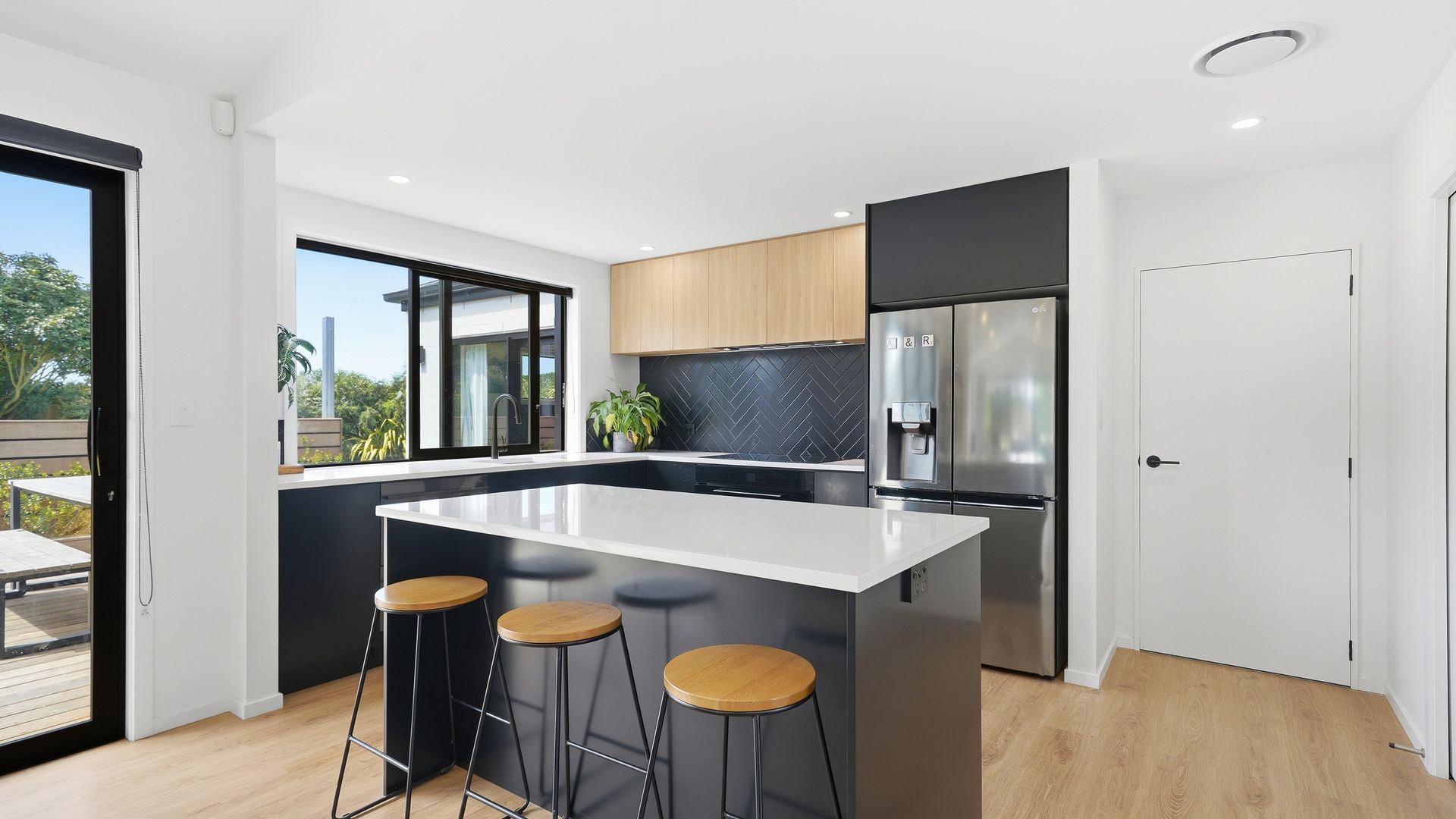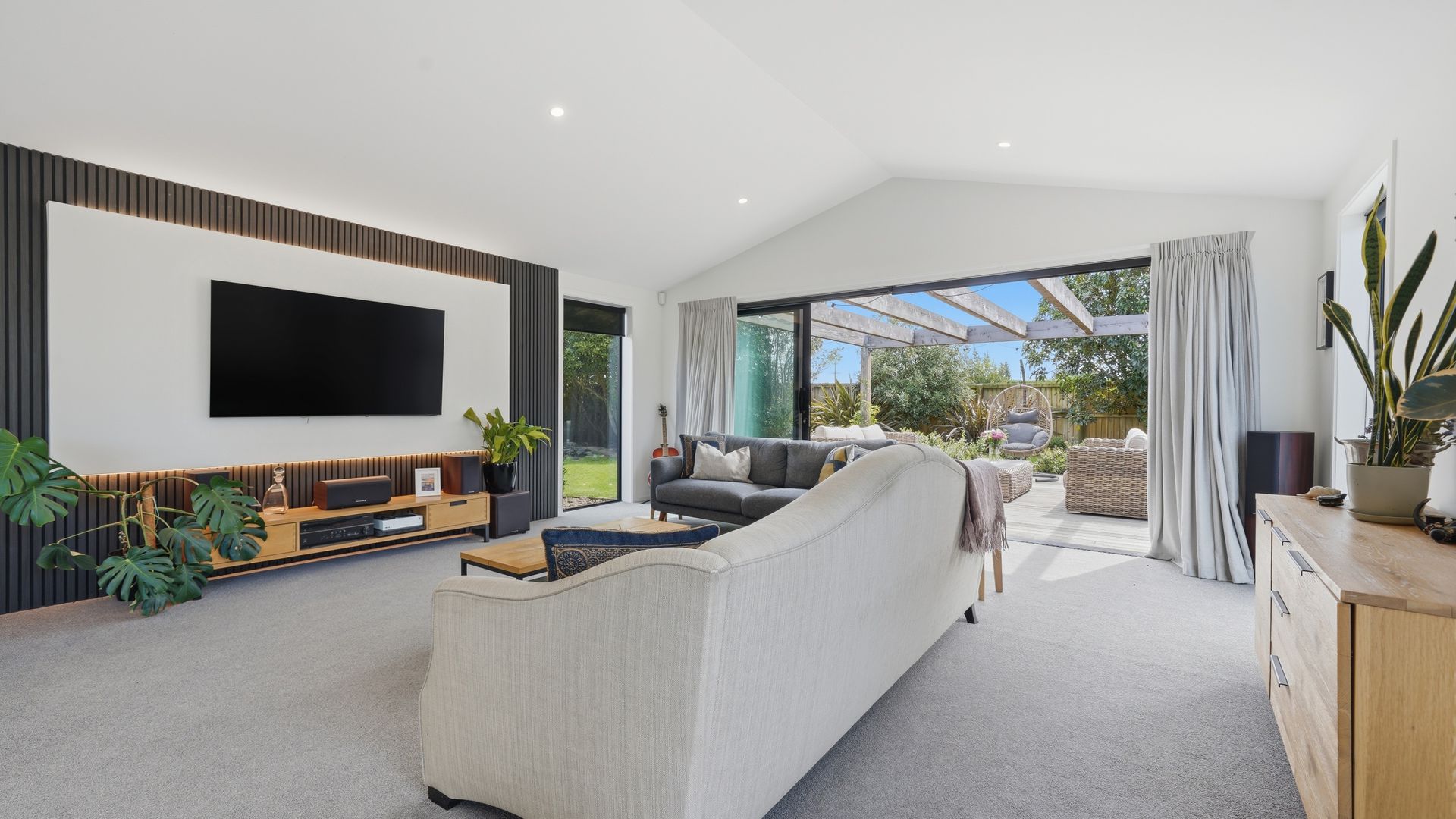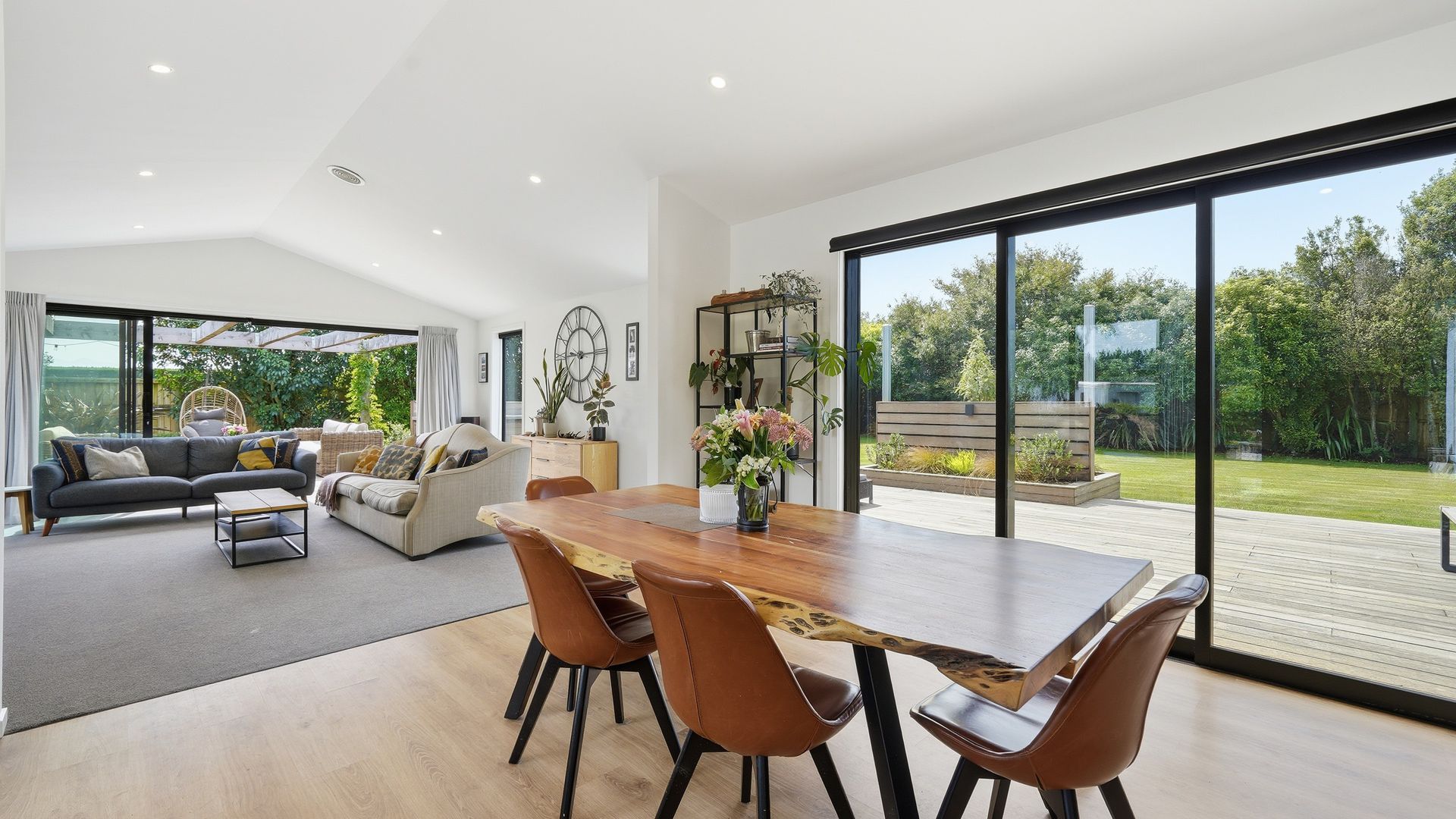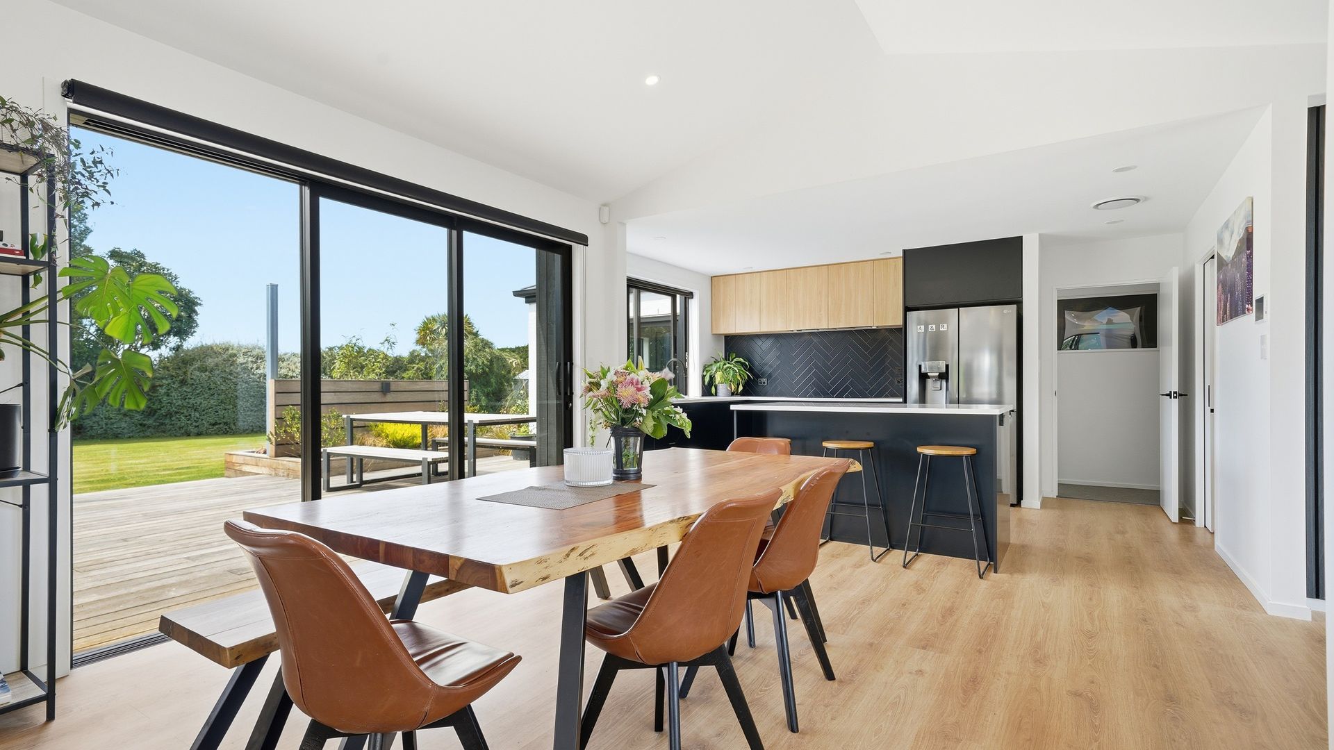 The heart of the home is a spacious open-plan kitchen, dining and living area designed for easy living and effortless entertaining. The kitchen is both stylish and highly functional, anchoring the space while flowing seamlessly through to the living zone. Large sliders open directly to the deck and BBQ area, creating a natural extension of the living space and an ideal setting for relaxed gatherings, long summer evenings and family celebrations.