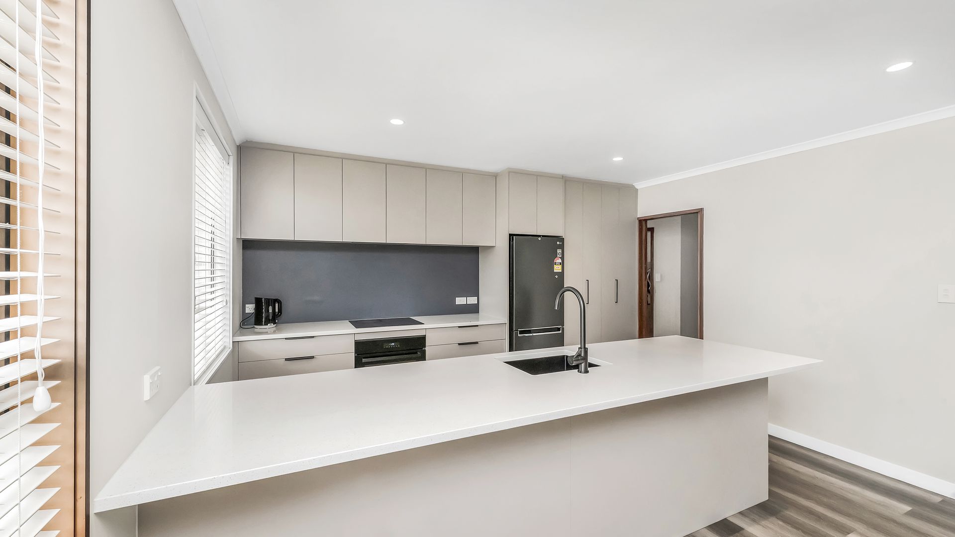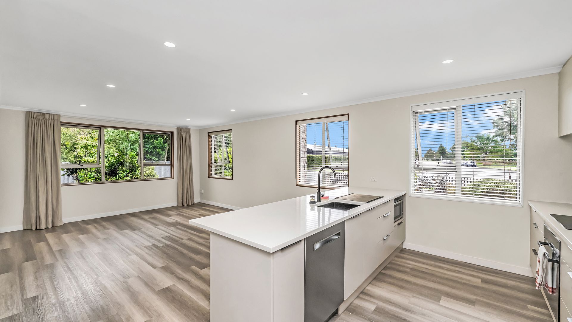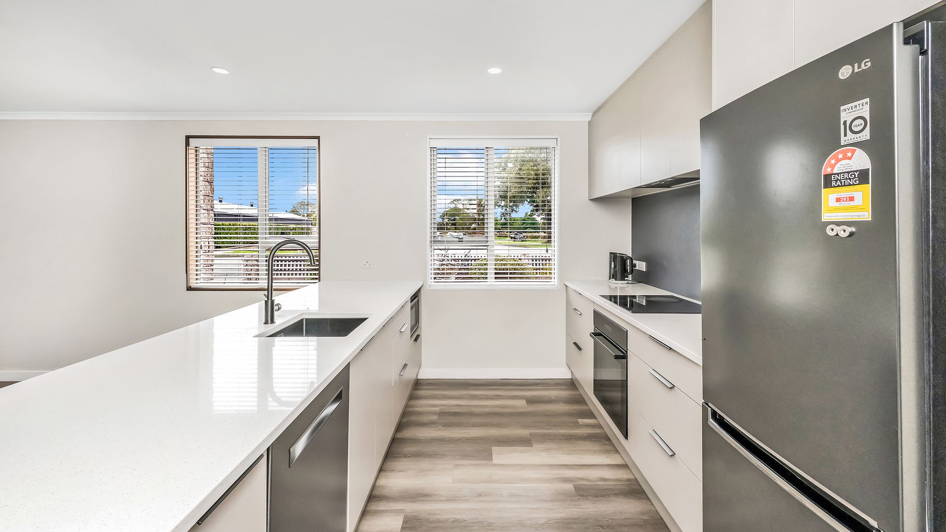 The modern open-plan kitchen sits at the centre of the home, complete with quality appliances and stylish stone benchtops. Thoughtfully designed, it connects effortlessly to the dining and living area, creating a light, welcoming space that works beautifully for everyday living and easy entertaining.